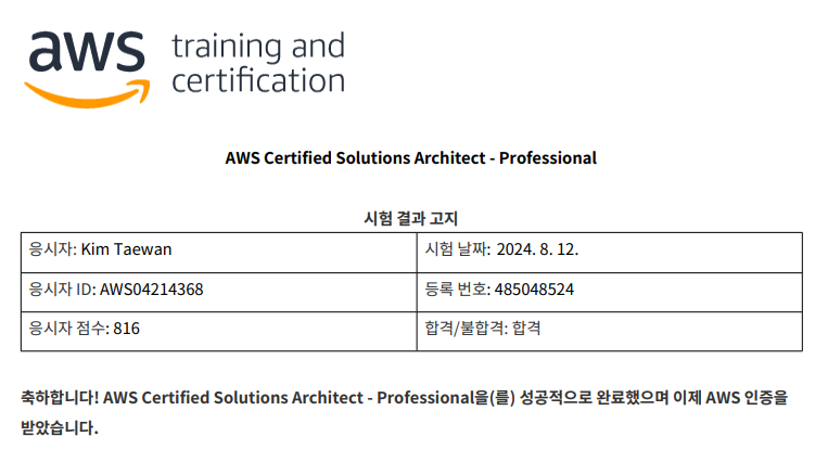 24.08.12 에 봤던 AWS Certified Solution Architect Professional 시험 후기입니다.