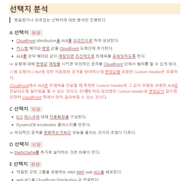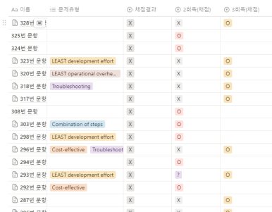 인강으로 개념공부를 하긴했으나 실질적으로 문제에선 모든 개념을 포괄하기는 힘들정도로 넓은 범위에서 문제가 나옵니다. 그래서 개념공부를 했다고 해도 서비스 안에 특정 부분, 예를 들어 실제 해당 서비스를 AWS 콘솔에서 구동해봤어야 알 수 있는 부분이 나오기도 합니다. 그렇다보니 인강을 통해 개념공부를 했다고 해도 모두 커버할 수 없다보니 기출문제를 풀면서 조금씩 현타가 오기도 했습니다.