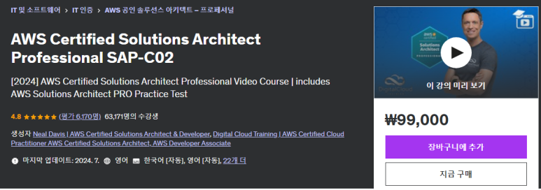 일단 대학교 계정으로 Udemy 강의를 무료로 들을 수 있는 기회가 있었어서 일단 인강으로 공부를 해보기로 시작했습니다. 사실 바로 덤프 문제를 풀어도 상관없었으나 뭔가 아무것도 모르고 문제를 풀어버린다는게 문제가 좀 아까웠습니다.