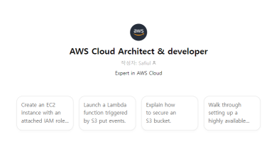 그래서 20일 정도 사지방에서 인강을 들었고, 모든 서비스 개념에 대해 Notion을 사용해서 하나하나 정리해나갔습니다. 다시보면서 이해가 안가는 설명은 ChatGPT 유료 모델을 결제해서 ‘AWS 전용 GPT Model + 공식사이트 검색’ 조합을 통해 검증하면서 공부했습니다.